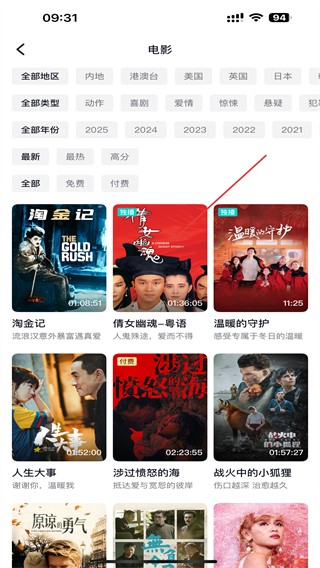 3、进入电影的页面内,选择并点击要播放的电影。