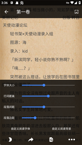 3、稍作等待即可进入正文阅读,阅读器支持字体大小、行间距、背景等多项设置,用户可根据喜好自由调节,获得最佳阅读体验。