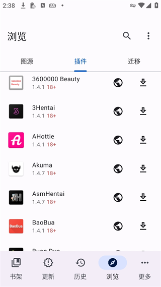 Mihon本身并不提供漫画,而是通过安装插件的方式从不同图源获取漫画,因此我们需要先安装插件,