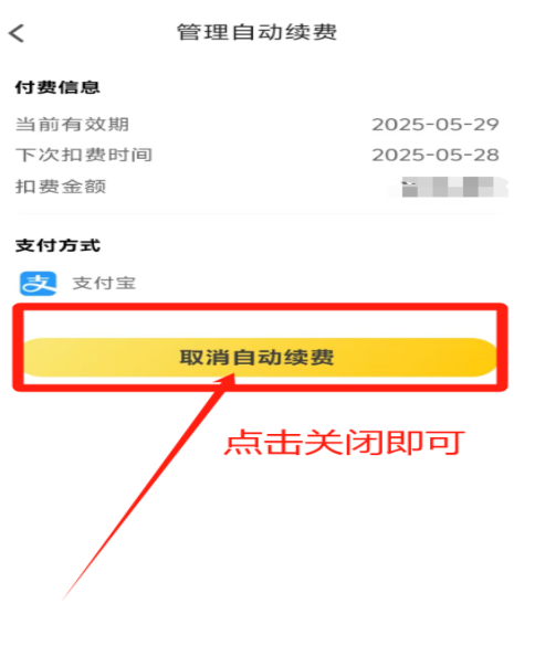3、点击关闭即可取消自动续费