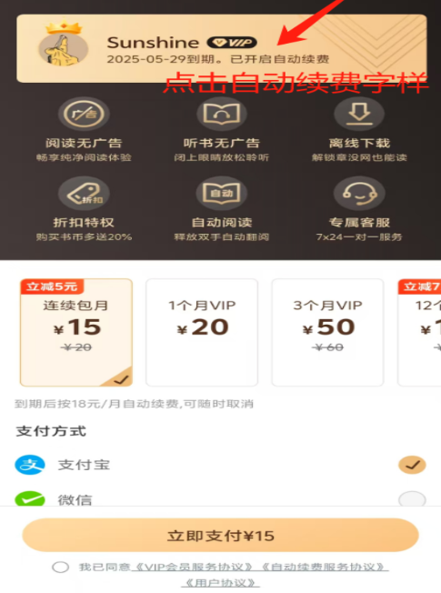 1、如需取消自动续费,请点击“我的-VIP会员”